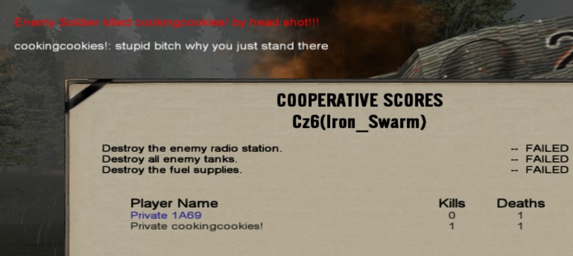 We both got killed on CZ6 because I was asking about that glitch and she called me a bitch (screenshot 2) but she later apologized for that on AF1 - Airfield after I said to her she was not very friendly. I accepted that at that moment.