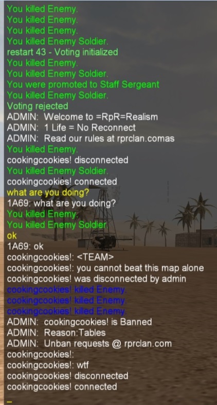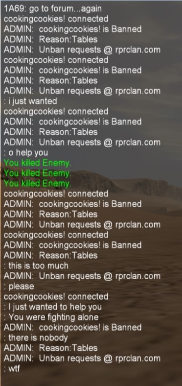 Banned cookingcookies! again for reconnecting on Realism server.