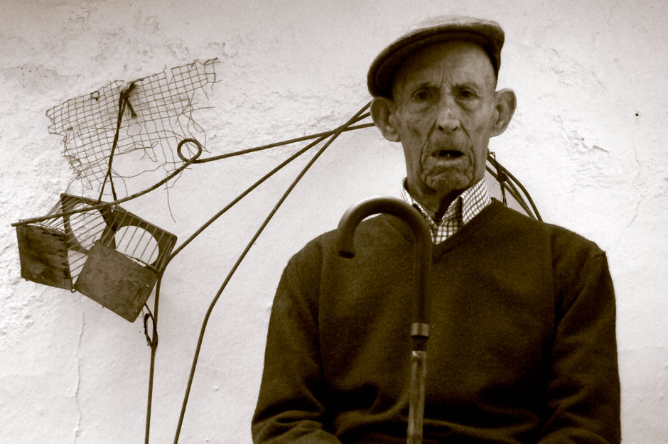 " I'm an old hard," says Manuel Mendoza , giving slaps on knees. Manuel , bony face, sharp nose , a slight smirk , speaking in the living room of his house, with his stick on the side of the chair, his cap in the other, turned on the TV and mute. " He's dying around the world," notes , with a touch of pride. Twists his mouth in an ambiguous gesture , a gesture meaning " shame " but also " I'm still here ." Then start an endless list of names and nicknames , elders of Puerto Serrano ( Cádiz) , deceased , and ends with a "I do not like funerals " who may or may not hide sarcasm .