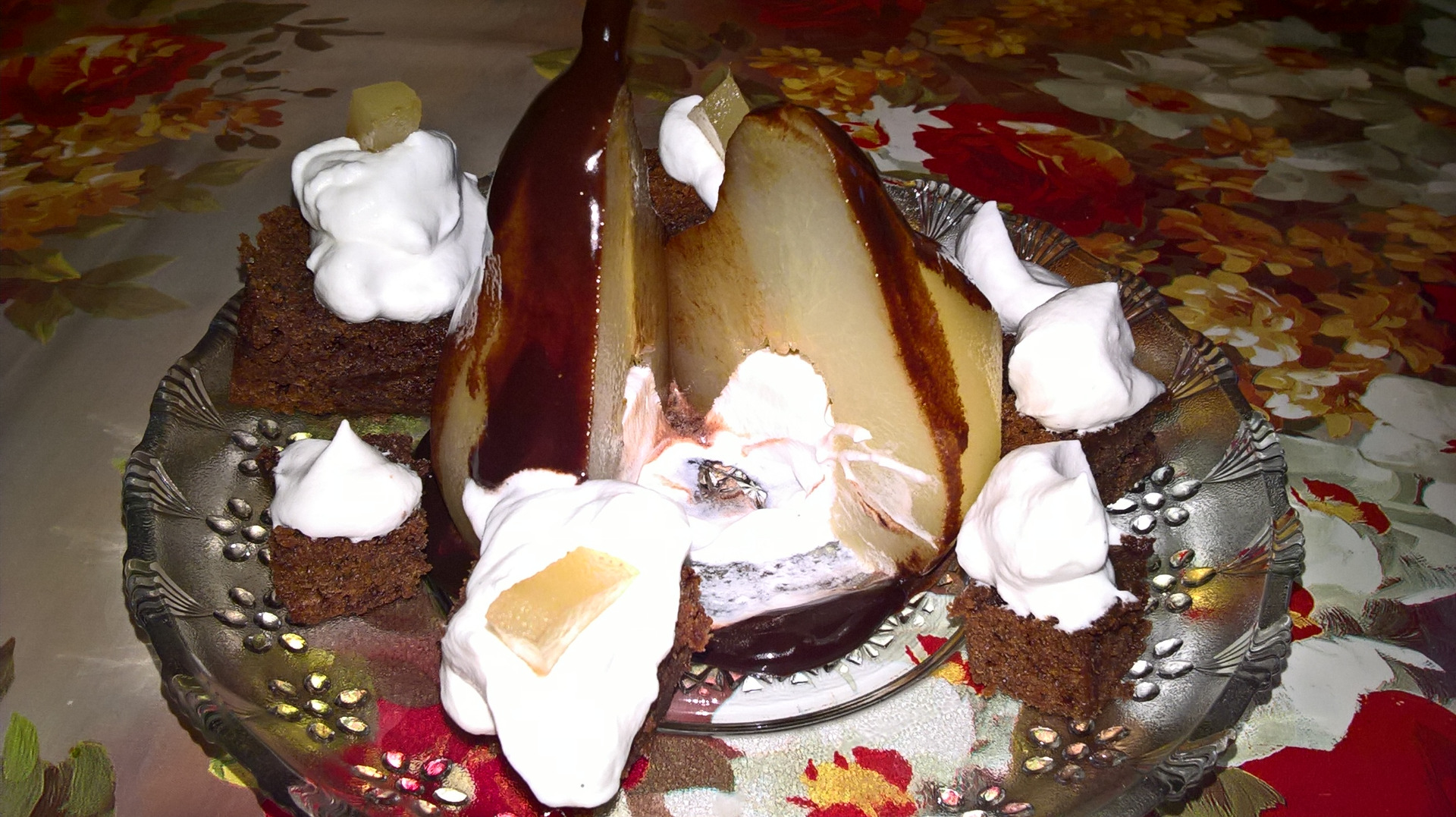 Poire Belle Helene (my first try)... with some mistakes, but I'm full. Made 4 of these: