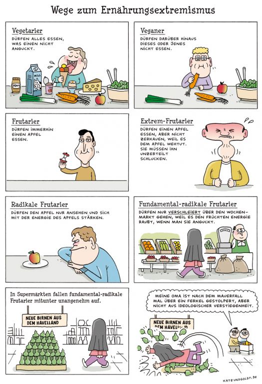 In supermarkets fundamental-radical frutarians sometimes attract negative attention.