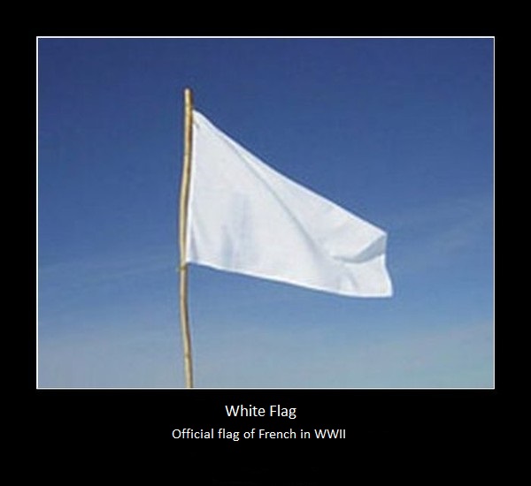 That's not far off. The white flag as a sign of surrender comes from the colonization of the Americas, particularly Canada and the US. The French had built a series of fortresses near the Atlantic coast to protect their trading stronghold from the British (the most notable of which was the fortress at Louisbourg ). Eventually the British came, however, and whenever a french fortress was taken by the British, the British would hang a white flag from the flagpole to tell others in the area that the fortress had been taken.