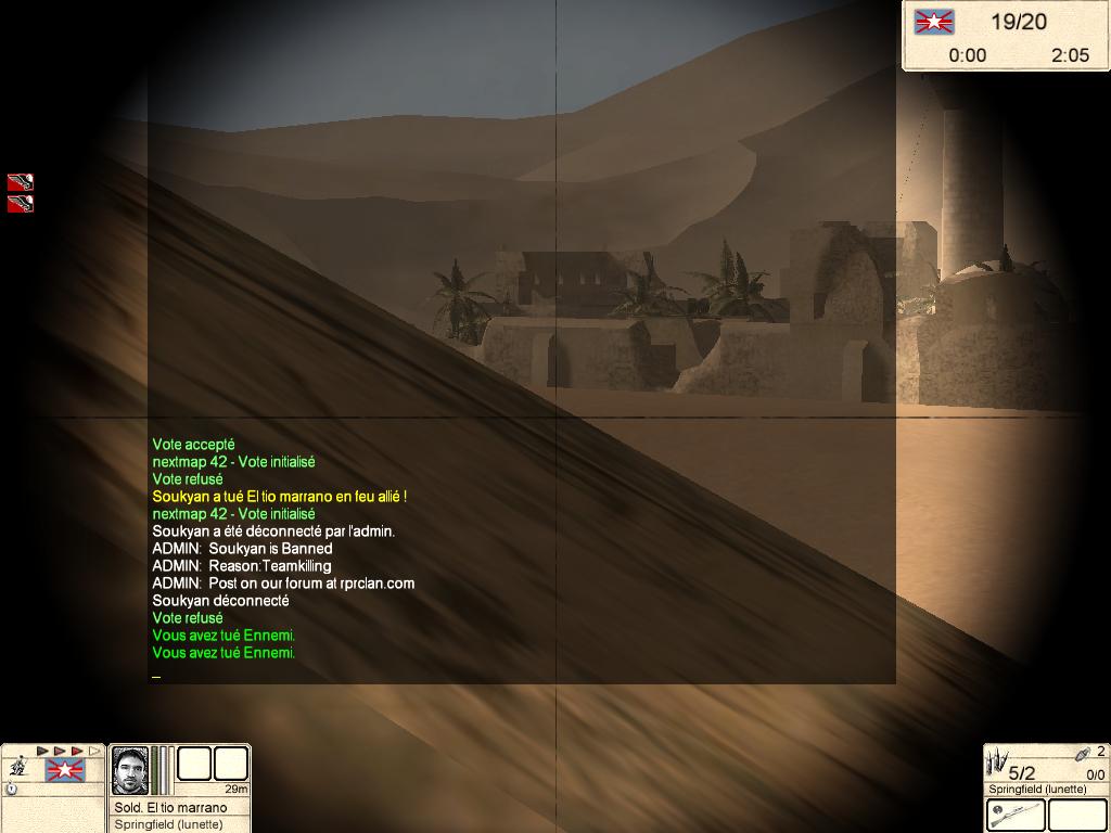 The next map, (Oasis), he voted again for nextmap. I didn’t vote this time because i wanted to play the map. So Soukyan emptied the clip of his M1 carbine on me, at the respawn spot.
