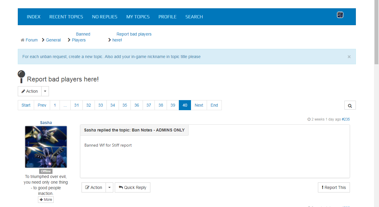 Replied by Sasha on topic Ban Notes - ADMINS ONLY