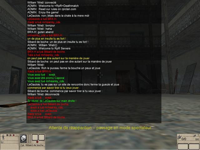 today I play in server RPR deathmatch. player LeGaulois insult me from cheater and after other insult. Infortunatly I've no capture of the first insult. But the next I have (not all, it could be write in a complet book!) Solicitating insult to my family and my mother. So I demand banned of all server of rpr thanks !