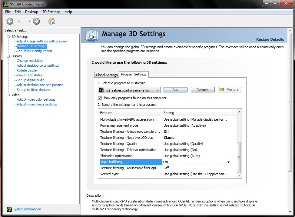 And make sure that triple buffering and antialising options are disabled in h&d2 setup.This way enable these options in your graphics control panel