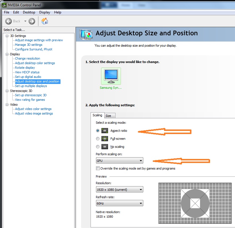 I tried all the possibilities in setup.exe and NVIDIA Control panel without improvements.That does not bother me, because I have a big 24-inch screen and still good