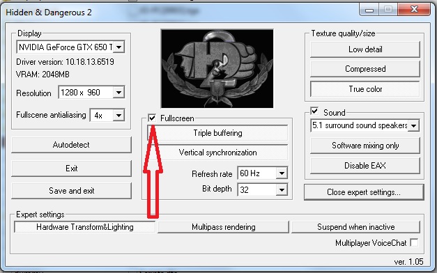 First thing in go into setup in Hidden & Dangerous 2 folder, select highest resolution and save and exit.