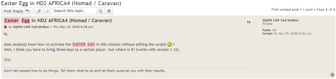 Replied by betteryouthanme on topic Af4 Easter Egg - Help