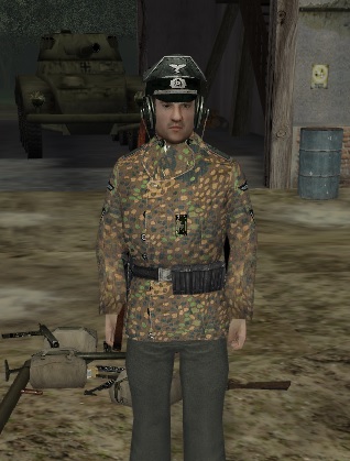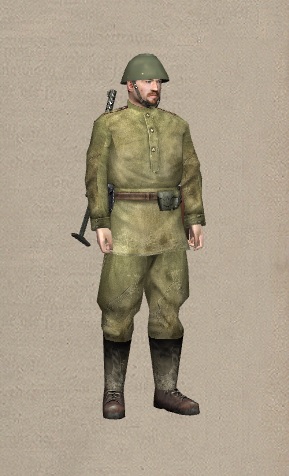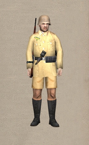 The soldier Uniform is still green, but the officer uniform is changed to a camouflage 'sniper' uniform. Some equipment is also changed.