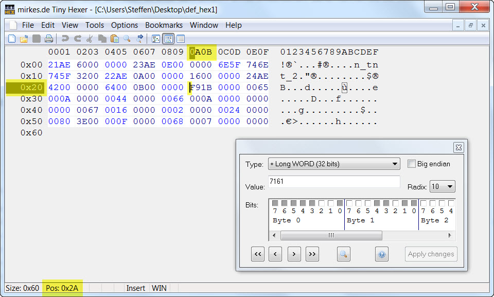 Here e.g the position of the label value (have a look at your texty.txt; 7161 "Location for explosives") is 0x2A - 0x2D: