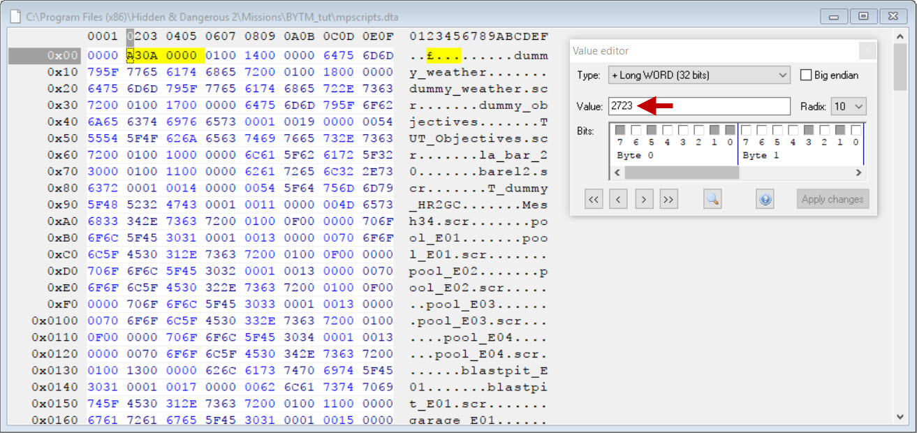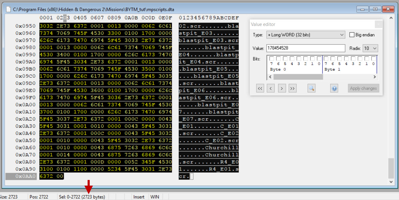 In the screenshot is 00 00 ea 0a 00 00 : just copy and paste into the mission mpscript.dta file in the beginning so it worked for me.