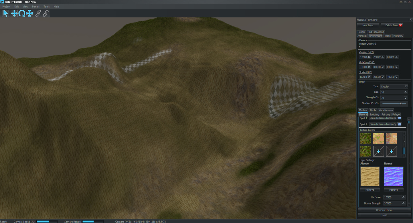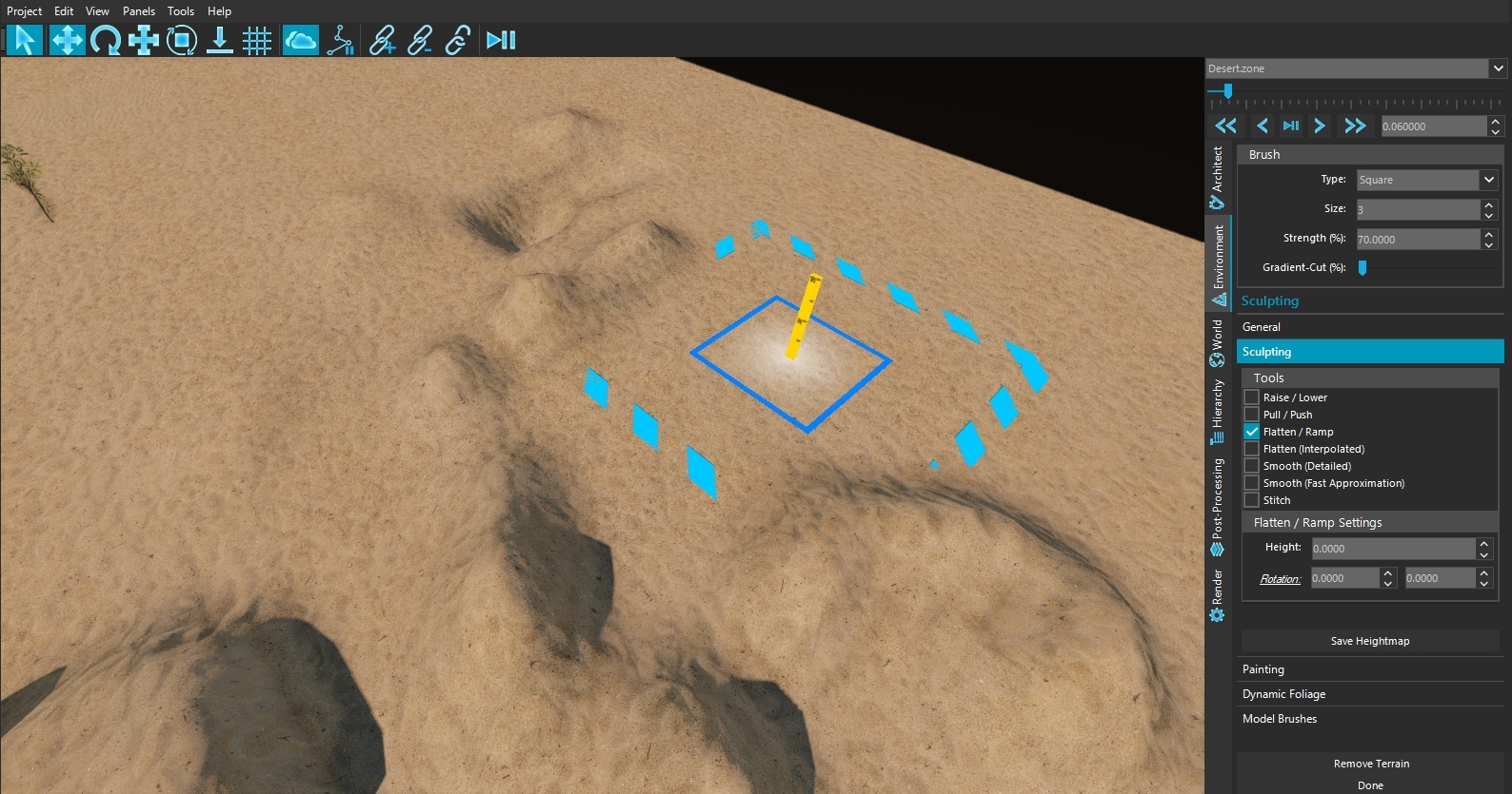 To recreate commando missions in H&D2 based on actual locations, we can use landscapes or heightmaps provided by Google Maps API . This is not yet supported by the Bright Engine. However, there is a free alternative using Blender and then importing the 3D terrain model into the Bright Engine for high quality terrain sculpting and painting. Yes, we can plaint terrain in Bright Engine using the brushes and available H&D2 textures
