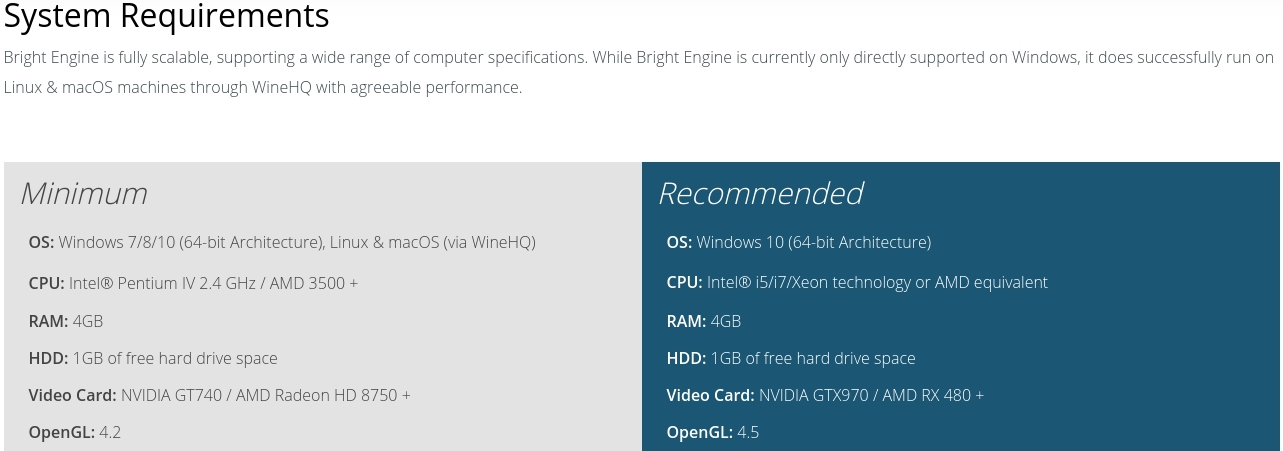 Without remembering the requirements for the Bright Engine, I bought the right video card