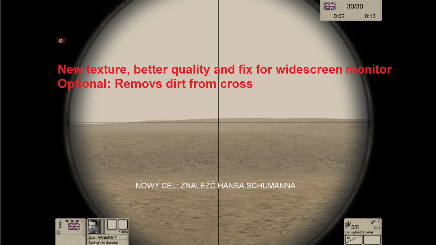 Mod improve visual aspect of scope sniping in H&D2 by replacing vanilla scope outline texture and adds black fill planes on sides for widescreen monitors.
