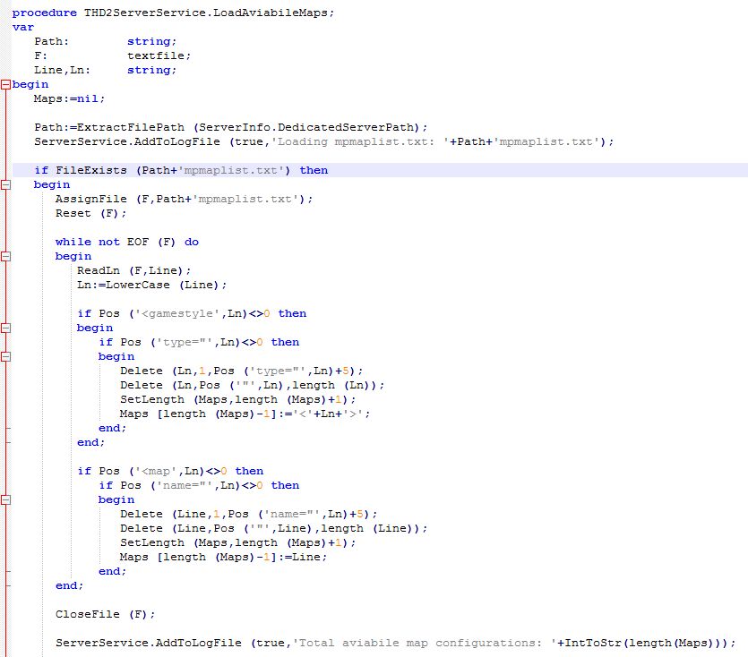 I looked this mpmaplist loading part (HD2ServerService.pas).