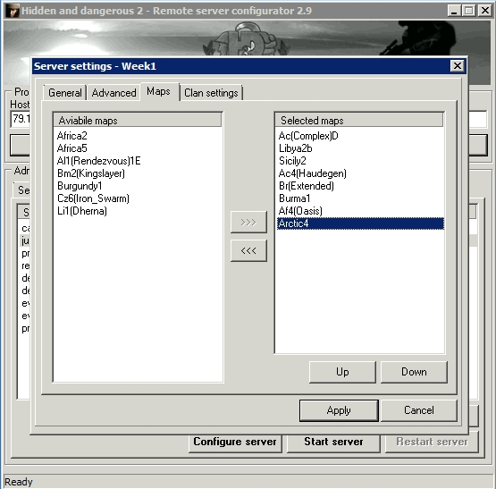 Here's a screenshot showing that maps in the Selected Maps column can be added back to Available maps. Server starts fine even as it is. There are no errors, warning or problems in the server log. Right now our map count in mpmaplist is 275(46 VTM missions), but with shorter map/missions, that number can grow, until it gets close to 11.8 K lines... then we have this problem.