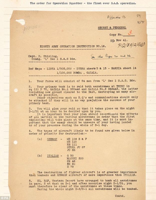 However, the raid was abandoned hours before the four-man unit parachuted in. Rommel was forced to return to Germany after being badly injured when his car was hit by the RAF.