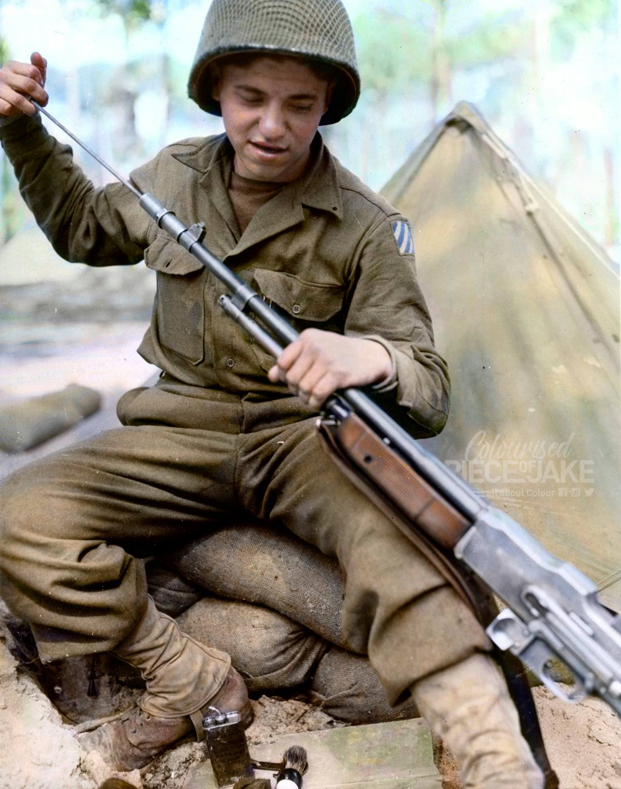 The hinomaru was a blank flag carried by every drafted Japanese soldier. It was signed by everyone in their life; mother, father, sisters, brothers, neighbors, teachers, wives, and children. It was a good luck charm that wished bravery and a safe return home to the carrier. The Japanese troop then marched off to war, the flag folded and tucked somewhere on his person.These are usually the flags that were captured by American troops in World War II. Because no one enjoys taking photos with the flags of their fallen enemies like U.S. troops.
