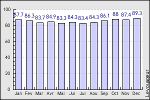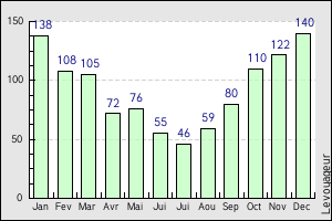 In green, the amount of rain in a year, in blue the rate of humidity...