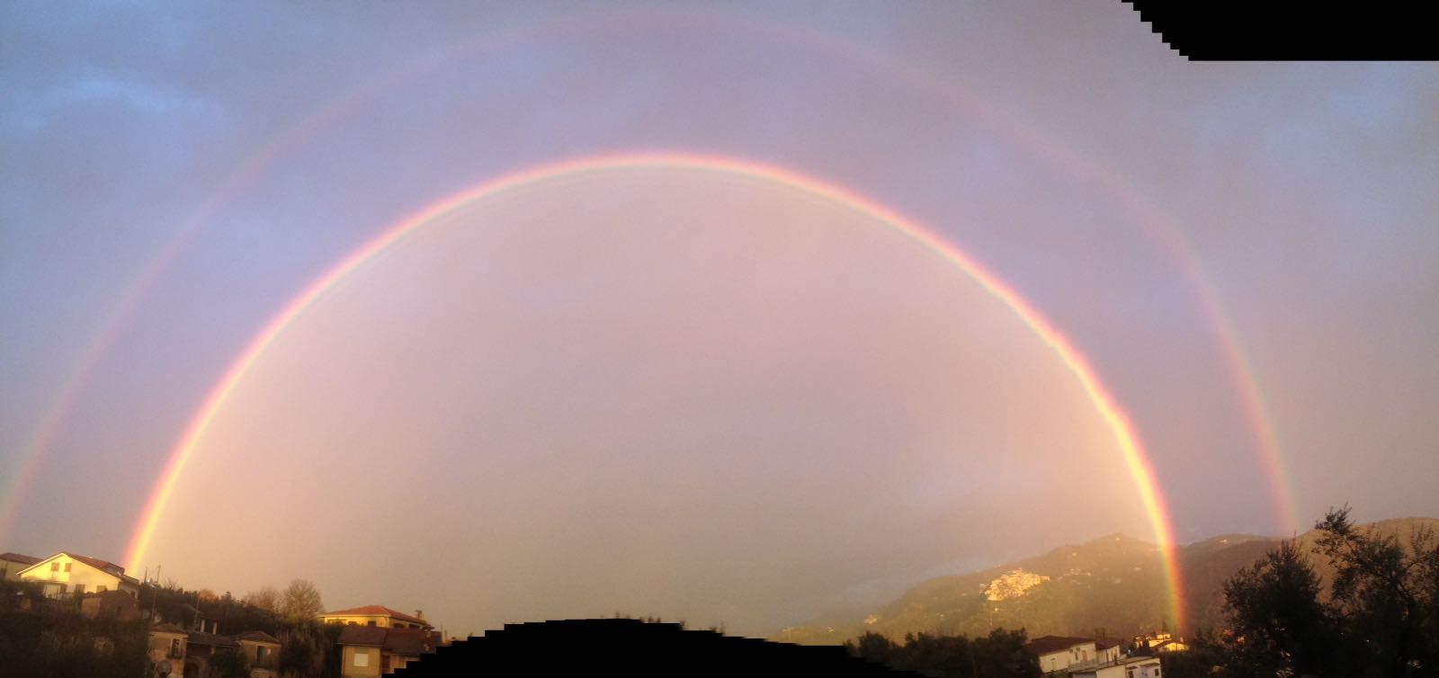 Hi guys. I did this pic last Wednesday. It was the first time I saw a full rainbow, but it was too big so I had to use the panorama mode and quality is not so good