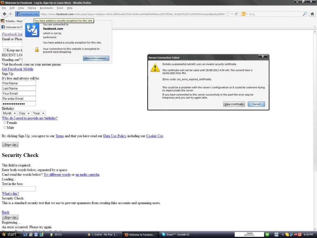 the FB web server. It says you added a security exception