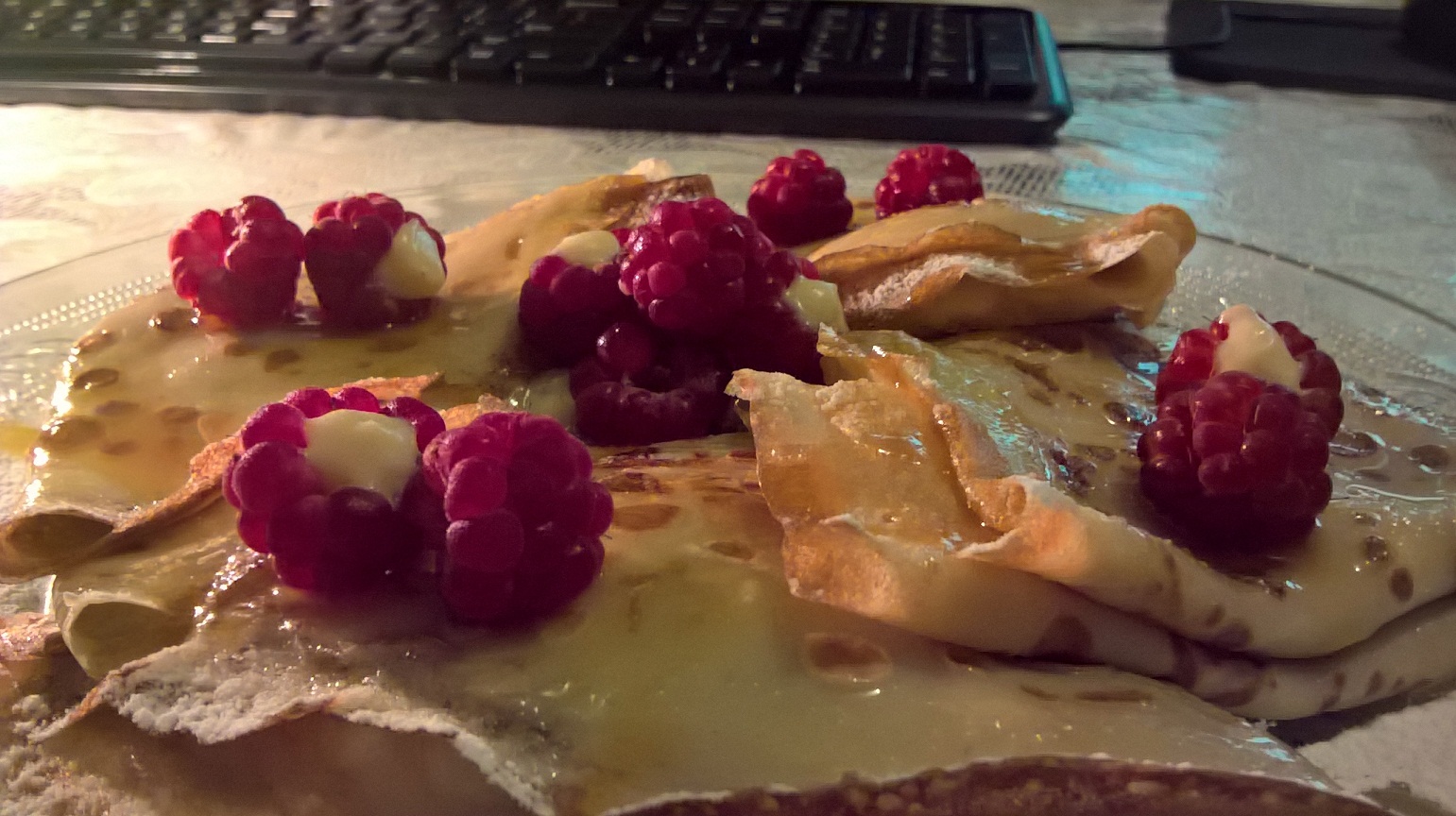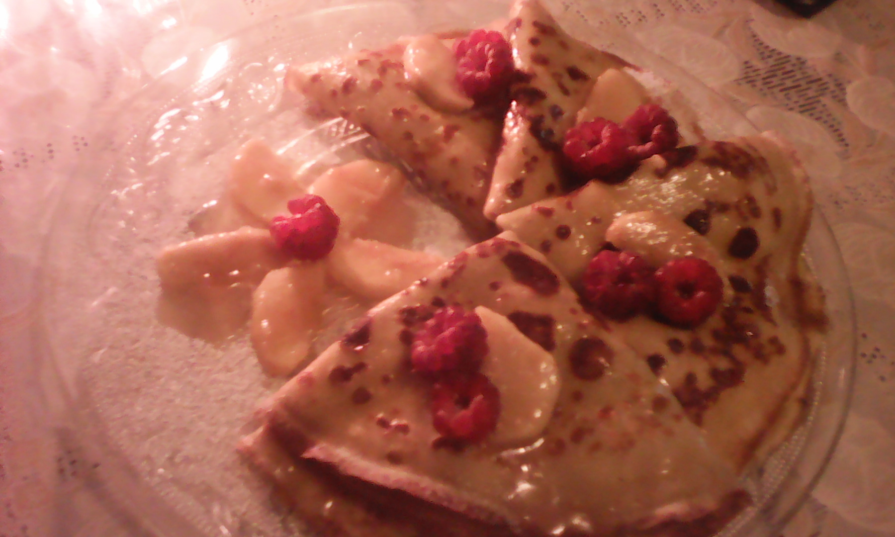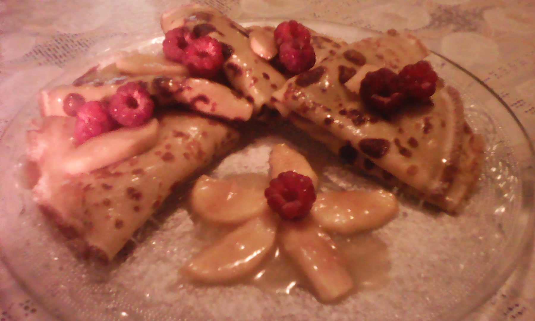 A little bit of pornography last night. Crepes filled with the same smooth vanilla custard and raisins