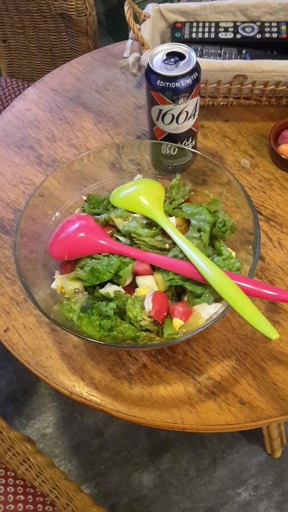 Simple stuff, but green salad, tomatoes and onions comes from the garden and eggs comes direct from the farm, 081.
