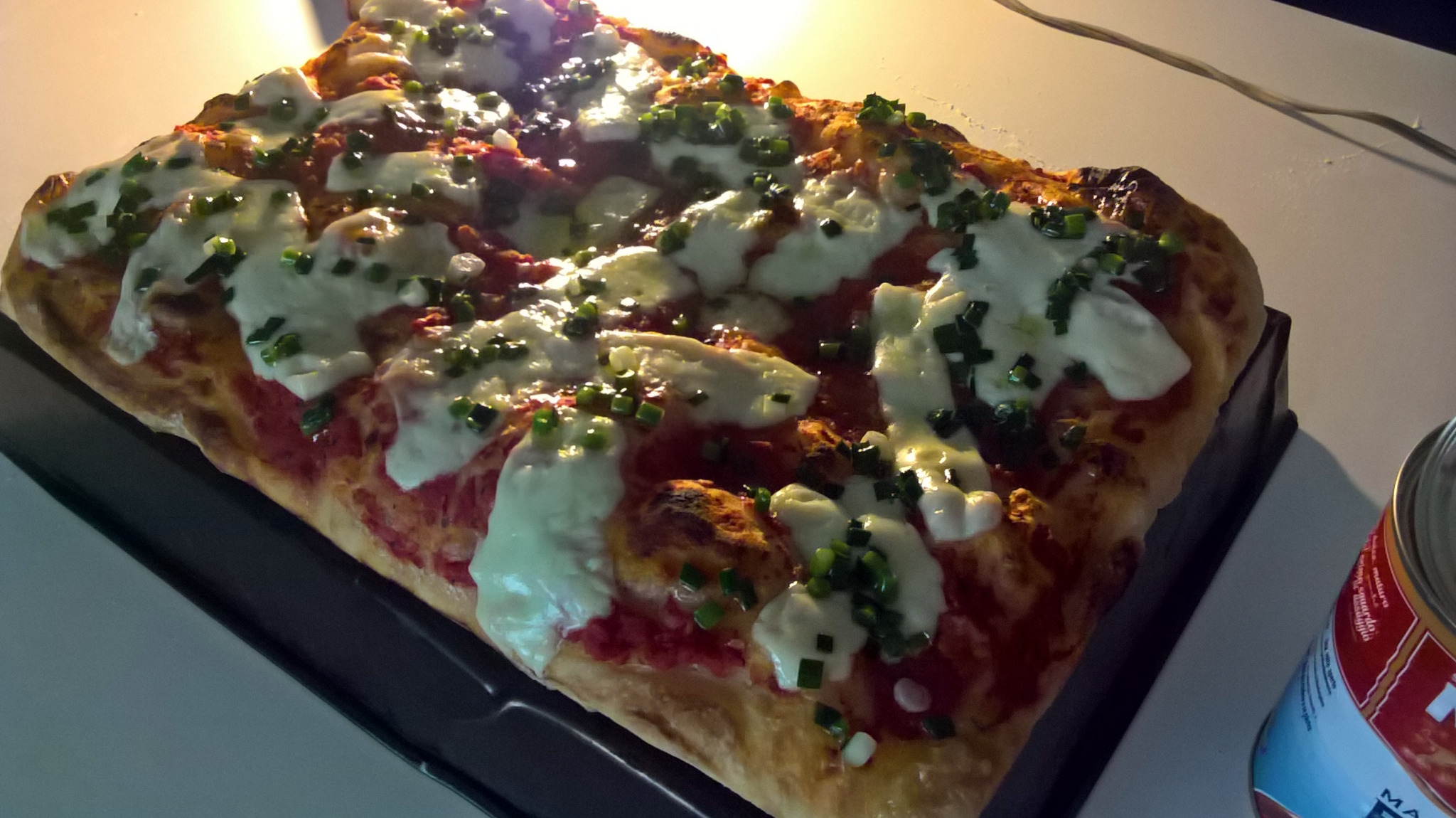 I didn't have money to buy basil so I used some green garlic from the garden, cooked