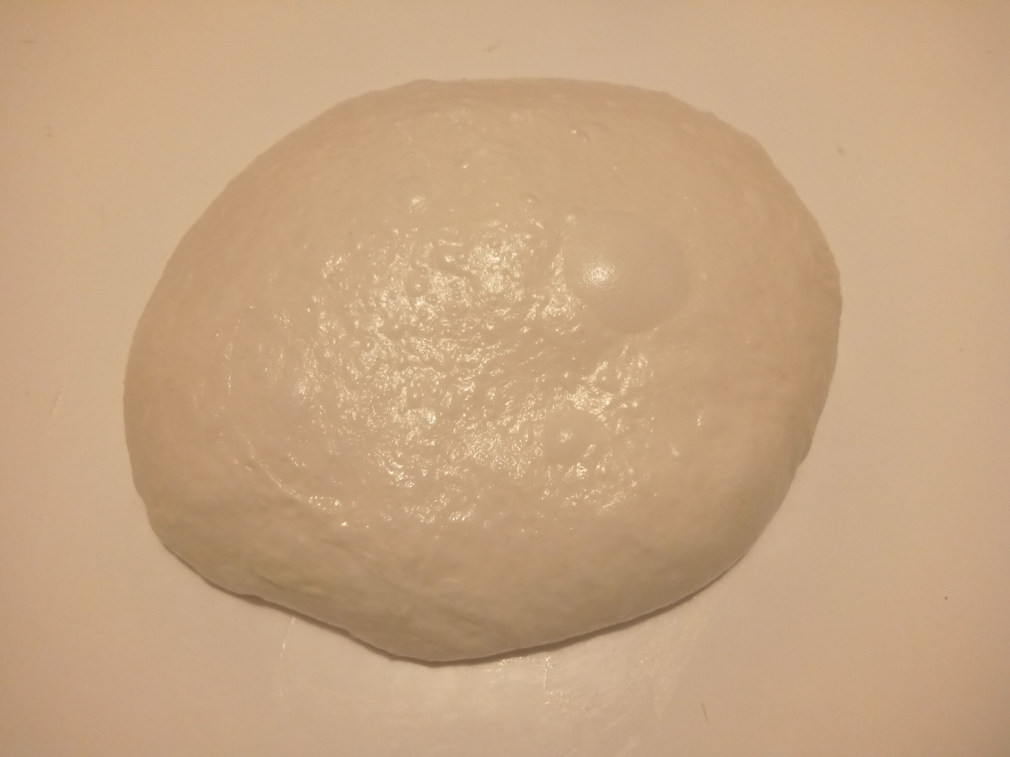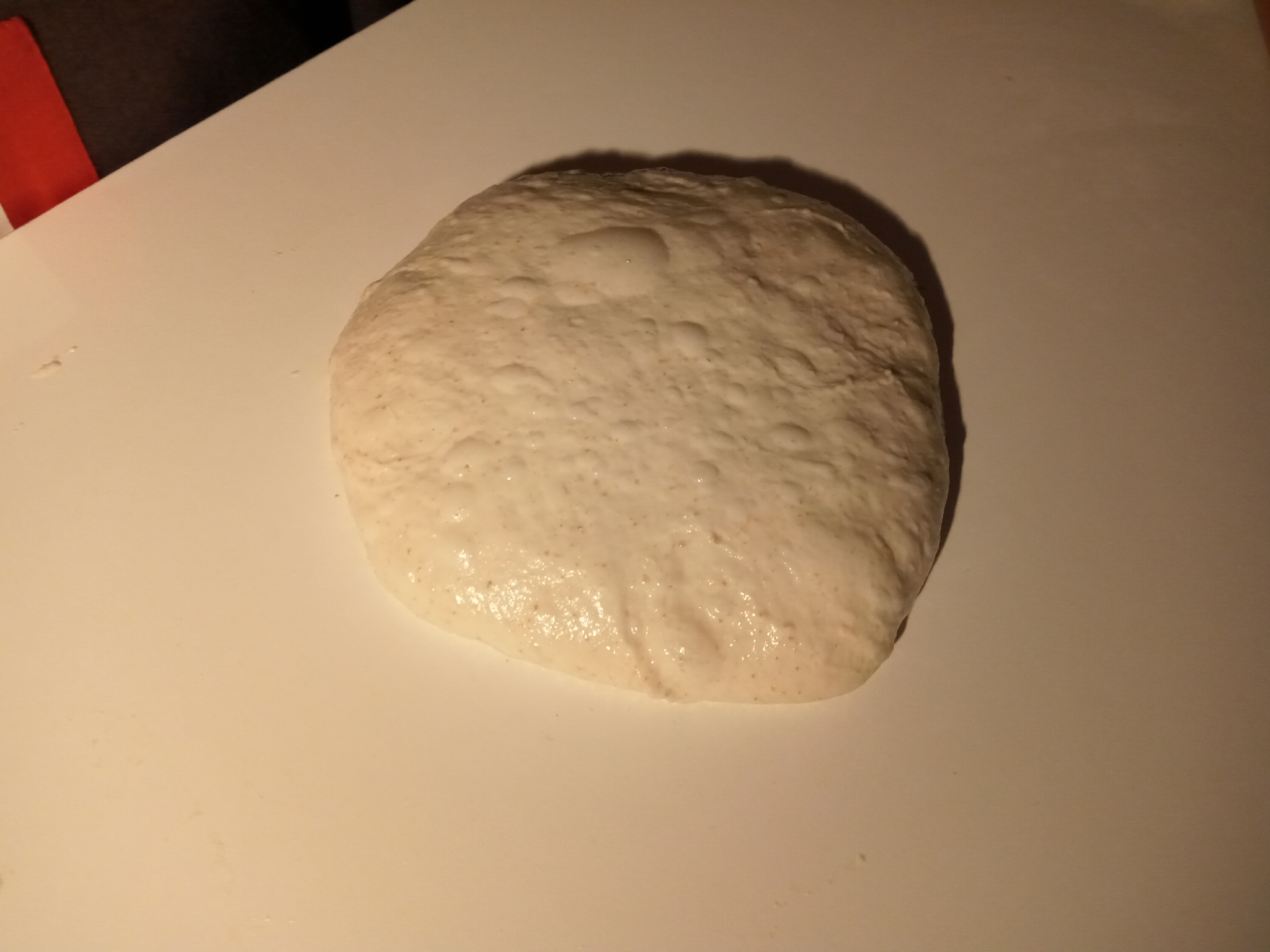 The final bake here with the last of the fresh yeast I had, had been used for a last experiment. I was still puzzled by fermentation quality since it's one of the big factors to developing the highest quality dough, that is also highly digestible and very tasty, crunchy and soft at the same time. Made this dough with only 00 white flour at 90% fermentation. I've reduced the dough development process by hand to a minimum, counting on the double amount of yeast I had. This combined with me also making a mistake... that is starting to make dough at 11 PM. After finishing the simplified process, trying to now shape the dough into a nice bubble before going into the fridge, I realized... it was still the consistency of British stew ... so I decided to give it a 20 minute rest and I should rest myself a bit because it has passed midnight. I woke up at 4:30 in the morning by the smell of beer The dough started to ferment on the table and I thought "Shit, this one is not going to bake". But then, I realized I know more about the dough than it knows about me, so I grabbed the scraper, oiled it with a drop of olive oil and shaped this beautiful bubble: