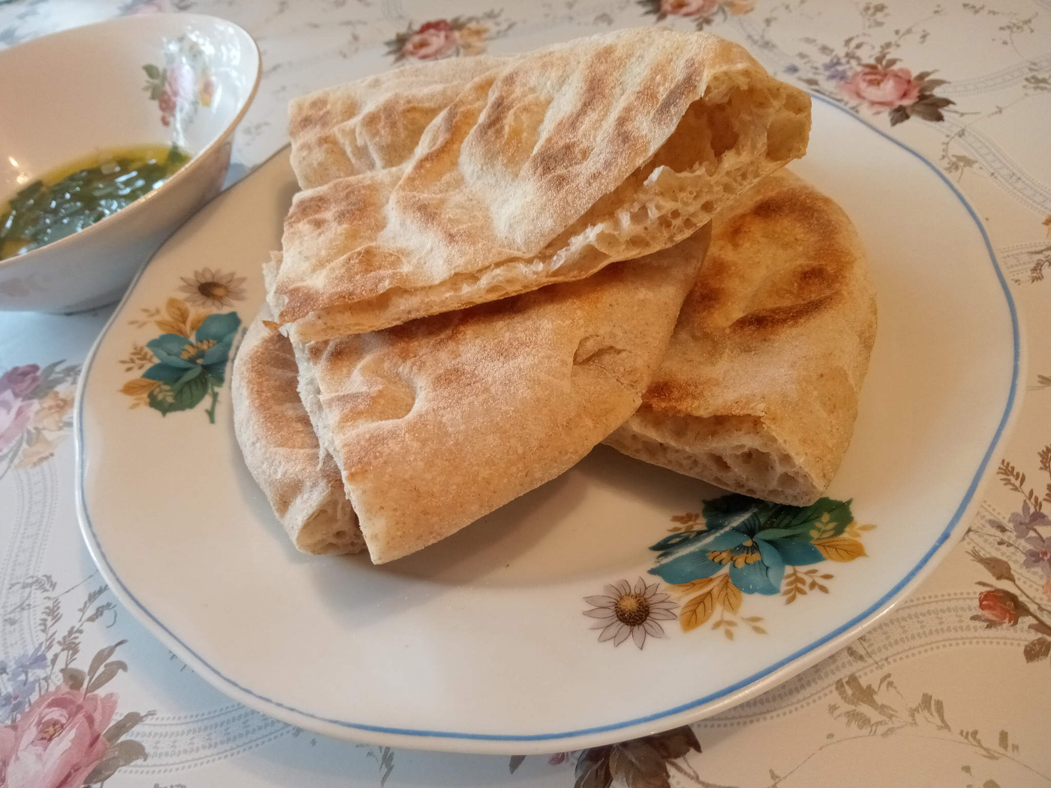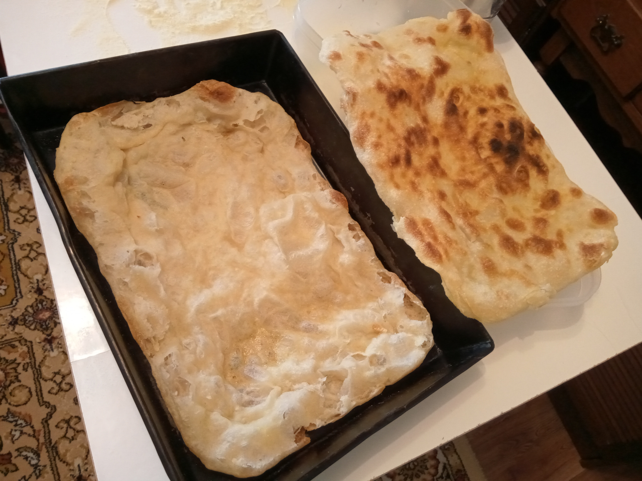 of this thread. I really like this simple flat bread with some garlic and olive oil. Not recommended if you live with someone or if you are a social person! I rarely make this, maybe once every 2-3 years, even if I wouldn't mind eating this every morning of the year