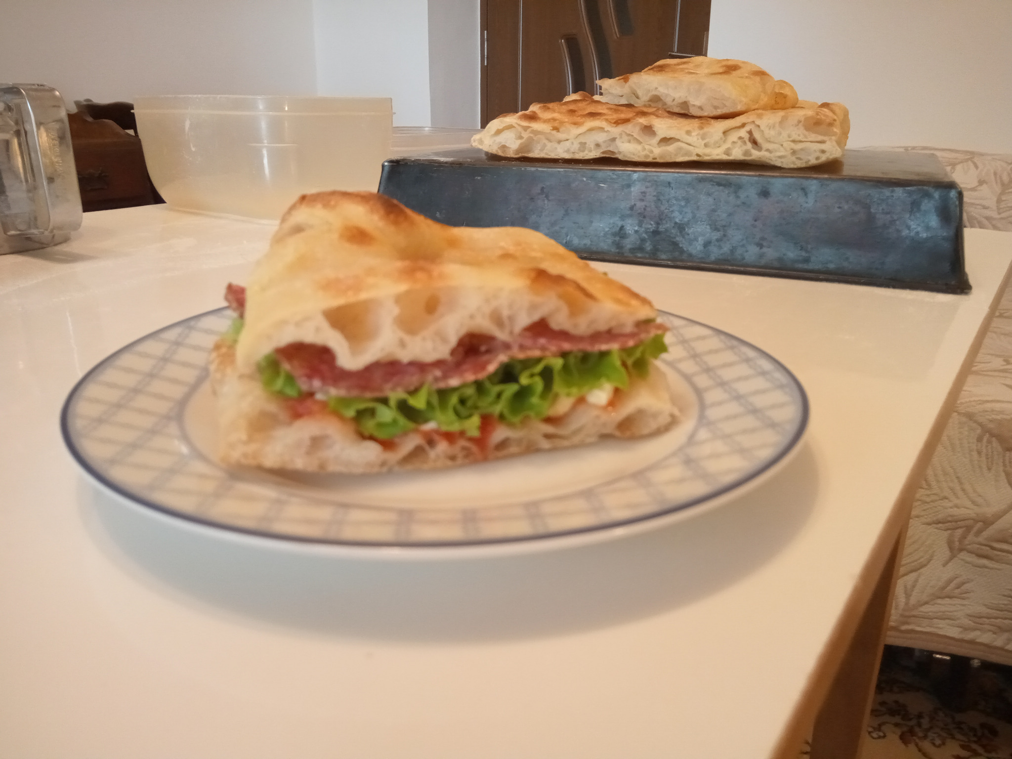 With leftover Mutti tomatoes, cheese, lettuce and expensive salami Funzo should start sending me his packs of Mortadella , specially when I plan falling asleep during the dough development process