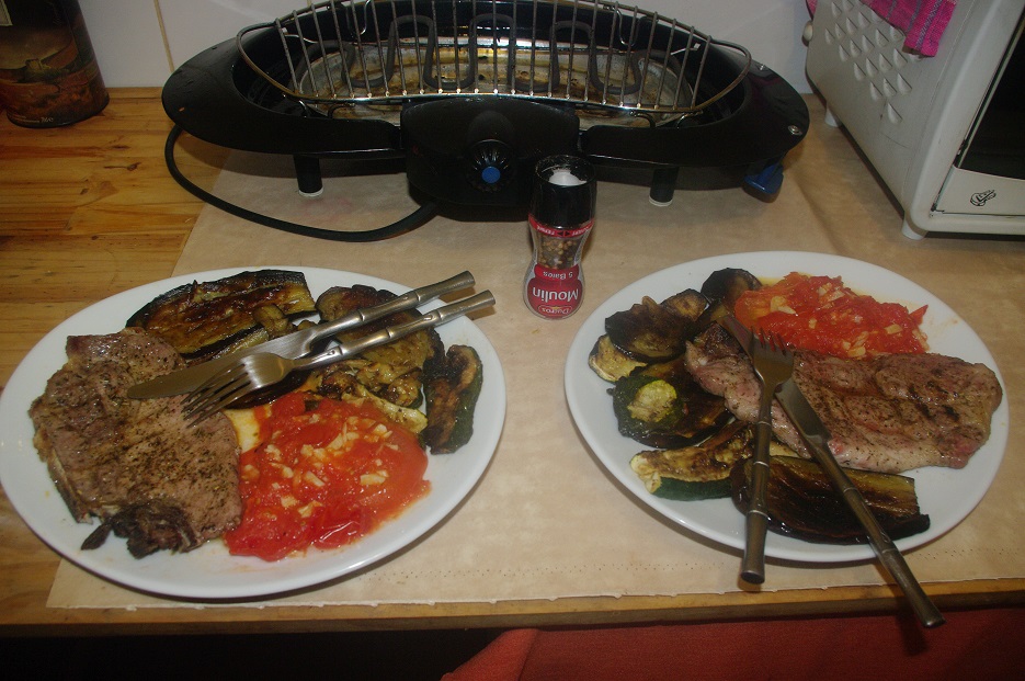 You may have noticed that this dish lack of cereals. For balance, you can add simply boiled wheat or else, as i do myself, prepare roasted slices of bread and cover with tomatoes and garlic. Happiness ...