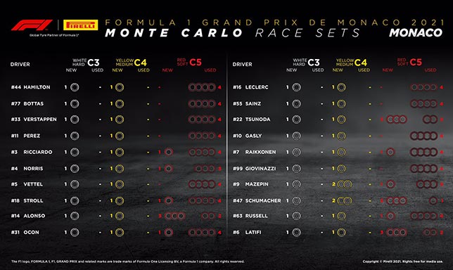 Before the start of the Monaco Grand Prix, the Pirelli press service published information about the remaining drivers' sets of tires ...