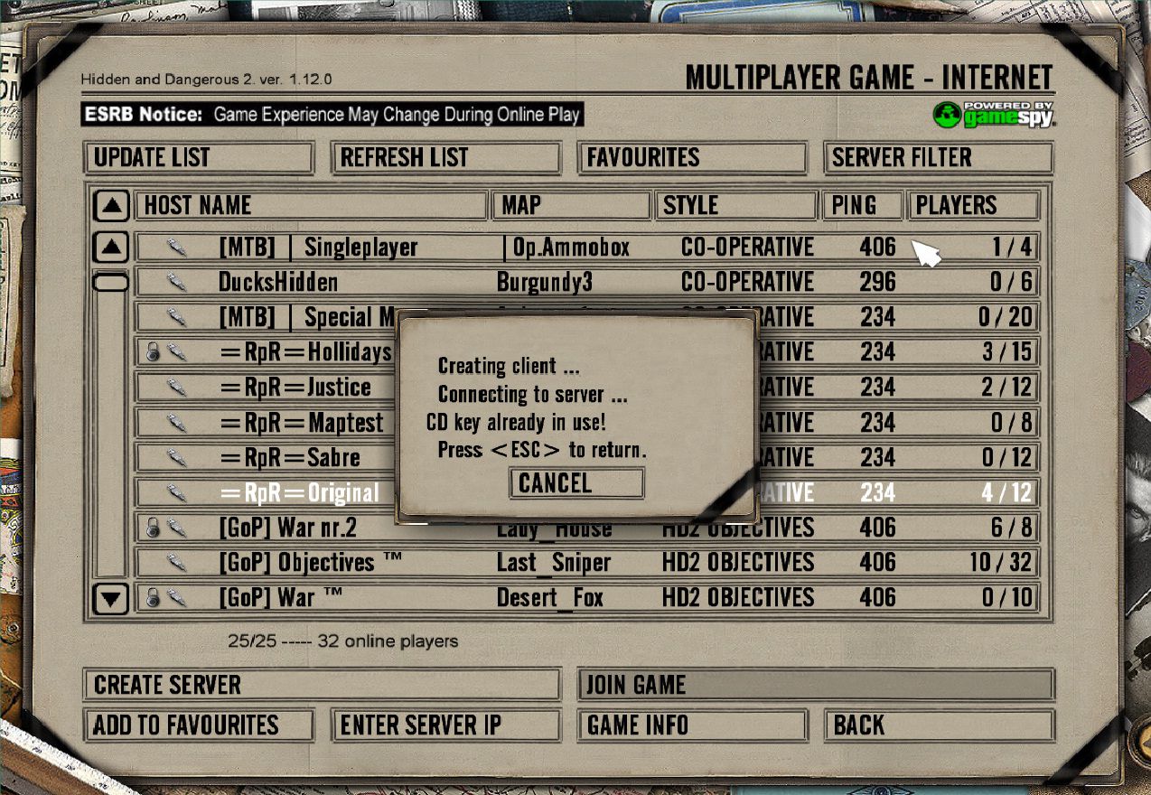 I have a little problem, sometimes i have problem to connect to some server, he said "CD key already in use!" and i can't to connect server,but on other servers i can!