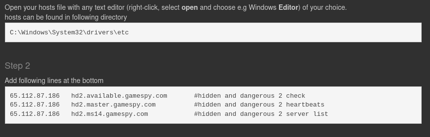 With the special help of Thomas Tailor it was possible to discover the problem some players have with H&D2 servers. This is only for testing purposes and everyone is welcome. The suggested period would be at least 1 week to make sure. To explain in plain English, it seems that QTracker is located outside Europe, through lower quality network, creating a loss of data between player/ client and H&D2 servers. We will try to take QTracker out of this equation and see what happens
