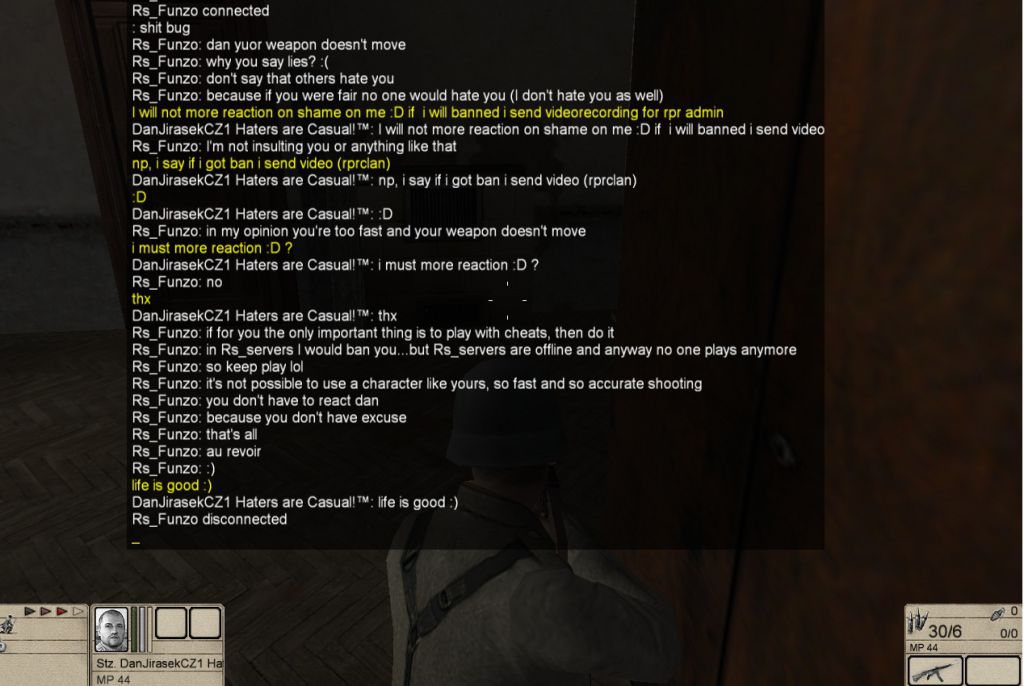 I dont care about the game anymore, but many players call me also cheater, because they didnt understand how i played. I was playing the game since 2003-2013 and i can say that i have the knowlegde about every weapon in the game. ( how to shoot, move e.g. with every weapon). Until i uploaded a video of mine, all players call me cheater, because i killed them even with K98-Sniper in near distance, while they were playing with BAR or MP44. After they saw my gamestyle they shuted up.